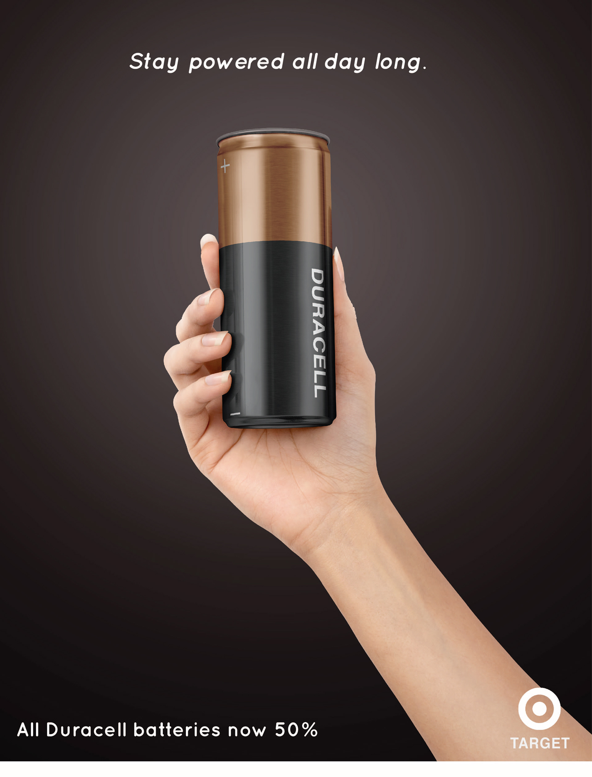 The brief was to design a print advertisement for the brand duracell for target exclusive price marking.
